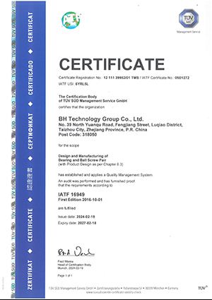 2018年先后通过德国TUV的IATF16949:2016质量体系转版审核和浙江省环科环境认证中心的ISO14001环境体系转版审核。